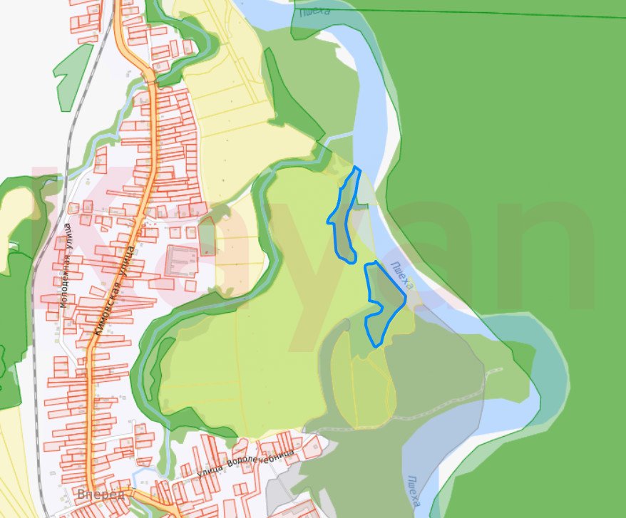 Продается массив 450 соток (4,5 Га) на первой линии реки Пшеха.