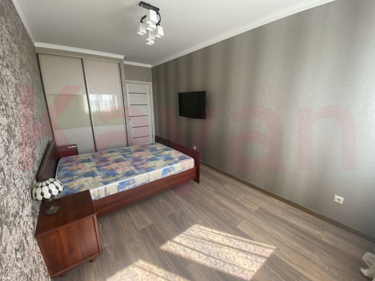 Жилье оснащено необходимой мебелью, спальное место - двуспальная кровать; из бытовой техники установлены 2 сплит- системы, 2 ТВ-панели, холодильник, стиральная машина-автомат, варочная панель и вытяжка, проведен интернет. По всей квартире грамотно установлены розетки и осветительные приборы.