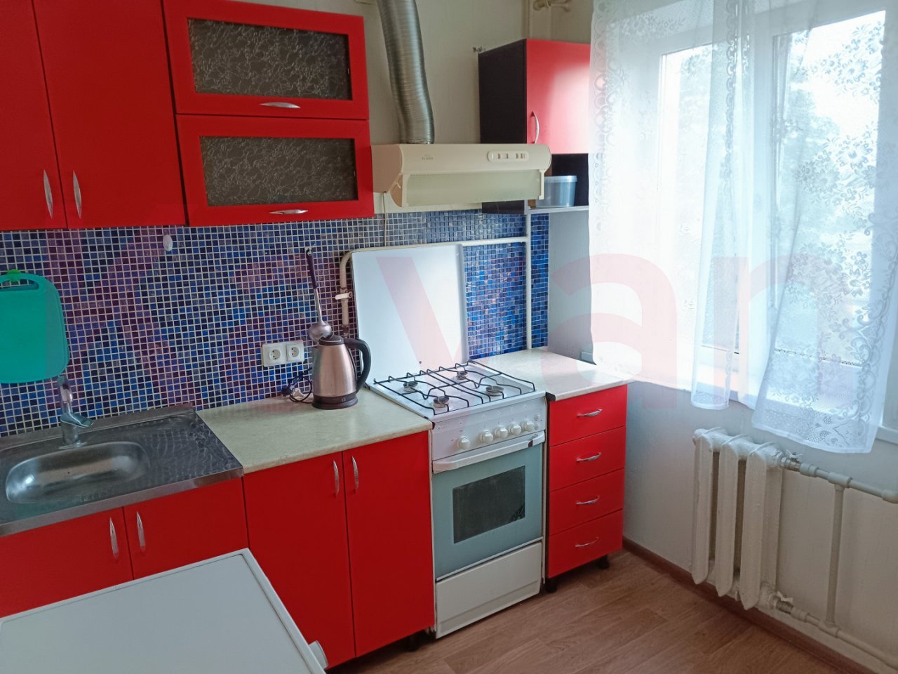 Балкон застеклен, состояние хорошее, ванная в кафеле. Есть вся мебель: диван, шкаф, кухонный гарнитур, из бытовой техники: стиральная машина-автомат, сплит-система, холодильник, газовая плита, проведен скоростной интернет.