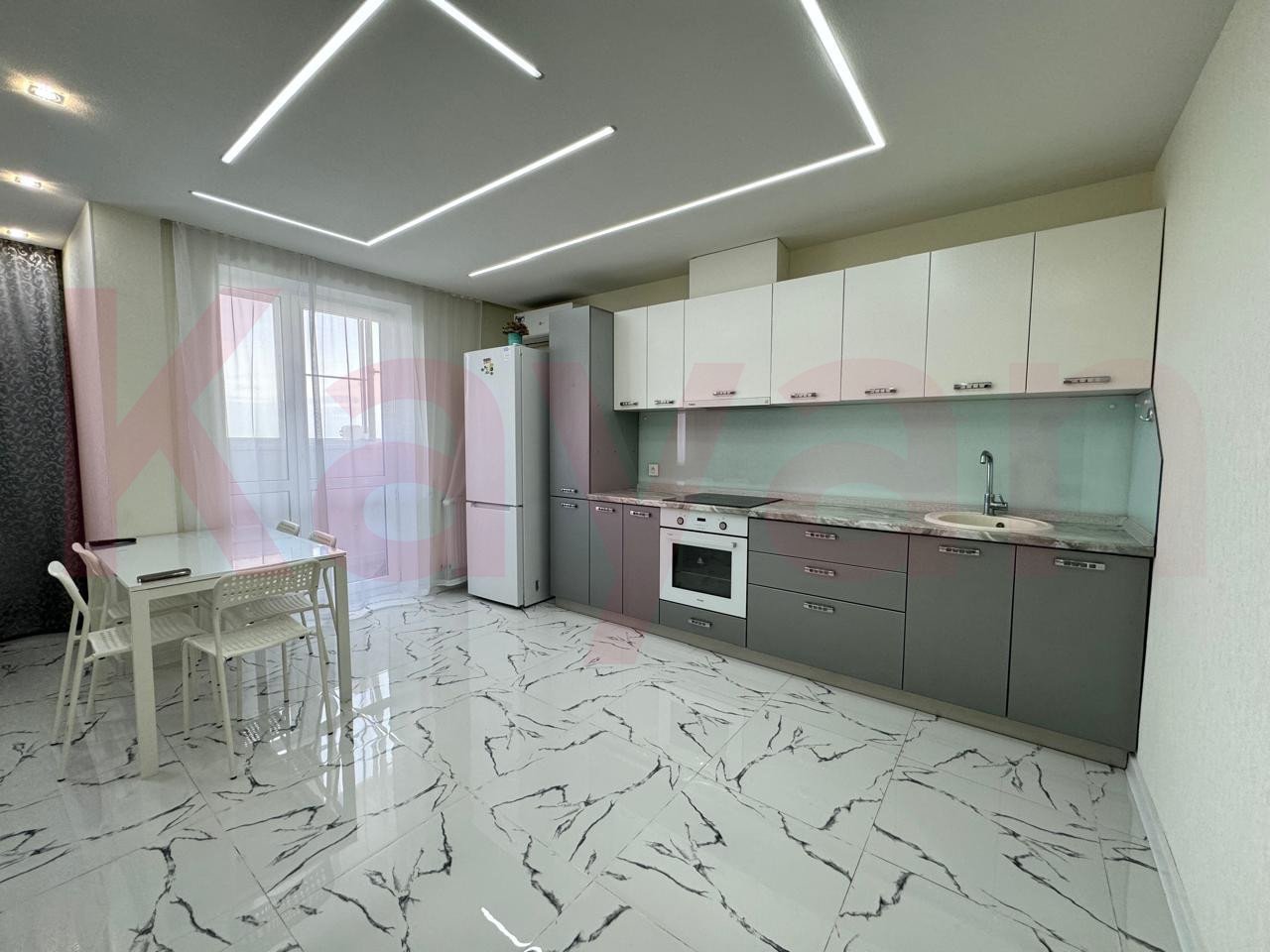 Общая площадь 60 кв.м.: кухня-гостиная - 30 кв.м. и комната - 18 кв.м., застекленная лоджия, современный ремонт, вся новая мебель, новая бытовая техника: двухкамерный холодильник, сплит-система, СВЧ-печь, ЖК-телевизор SMART (32 цифровых канала), стиральная машина-автомат, вытяжка, электроплита, проведен скоростной интернет.