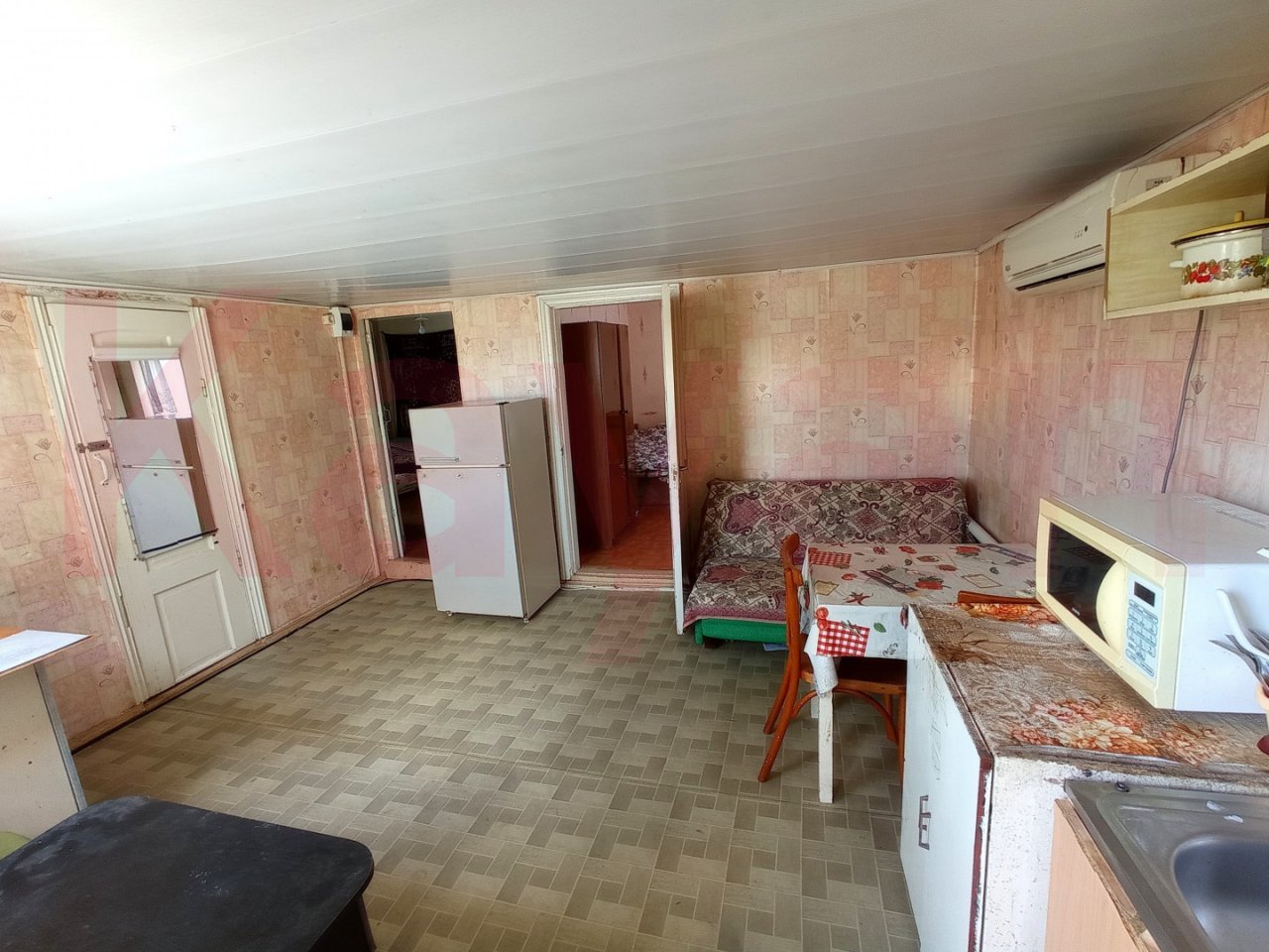 Квартира расположена на втором этаже, лестница на 2-й этаж - крутая (см. фото), поэтому семьи с детьми не рассматриваются. Общая площадь - 46 кв.м, с двумя жилыми изолированными комнатами 14 и 12 кв.м., кухней-прихожей - 11 кв.м. и совмещенным санузлом (раковина, душ, туалет).