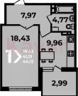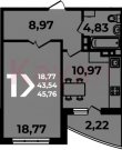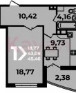 Площадь: 43.45 м²