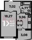 Площадь: 43.08 м²