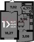 Площадь: 42.96 м²