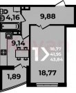 Площадь: 41.13 м²