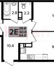Площадь: 60.80 м²