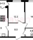Площадь: 58.10 м²