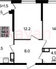 Площадь: 57.90 м²